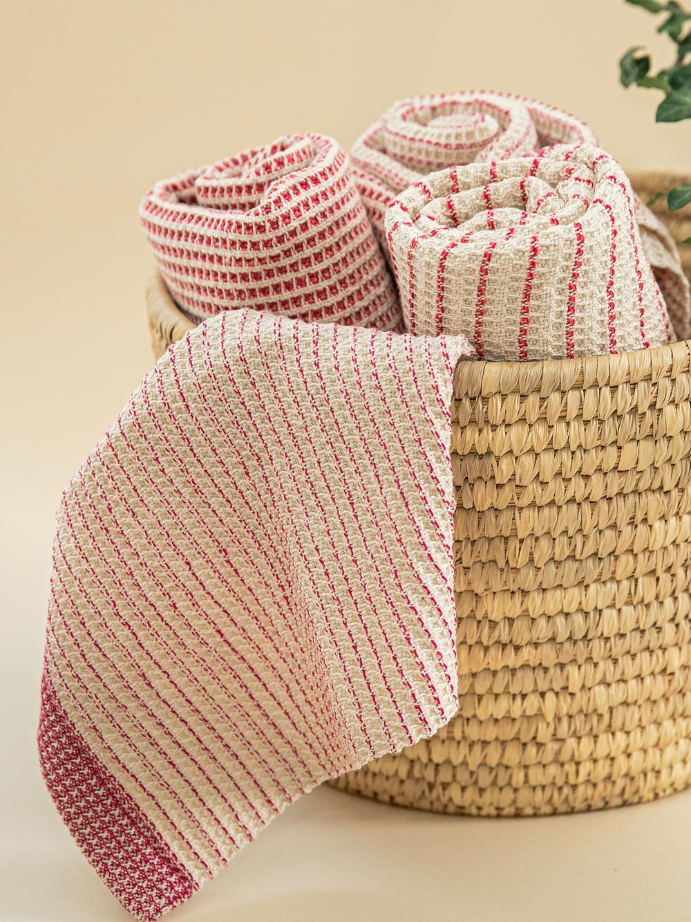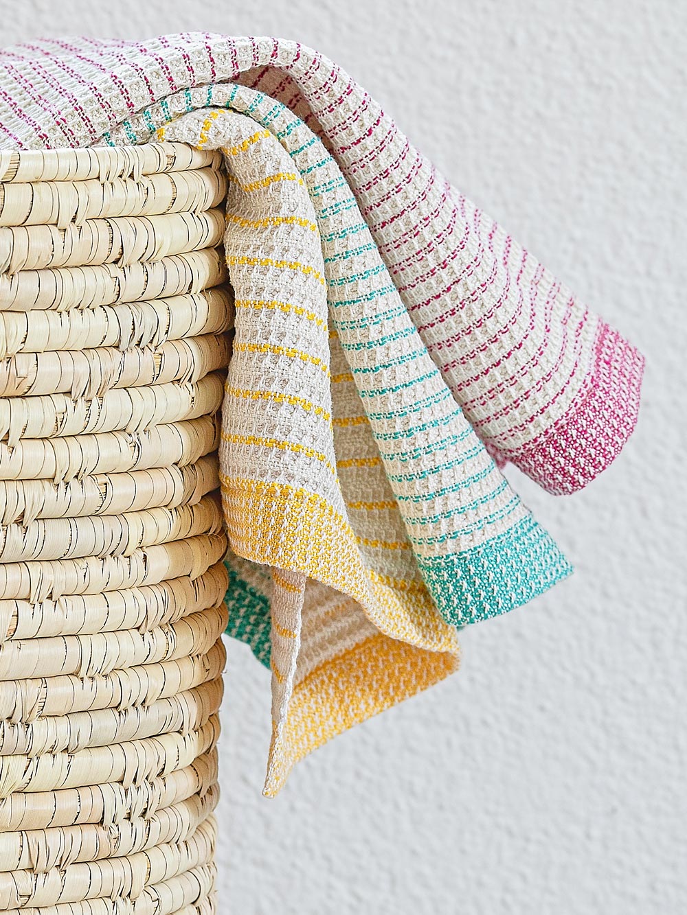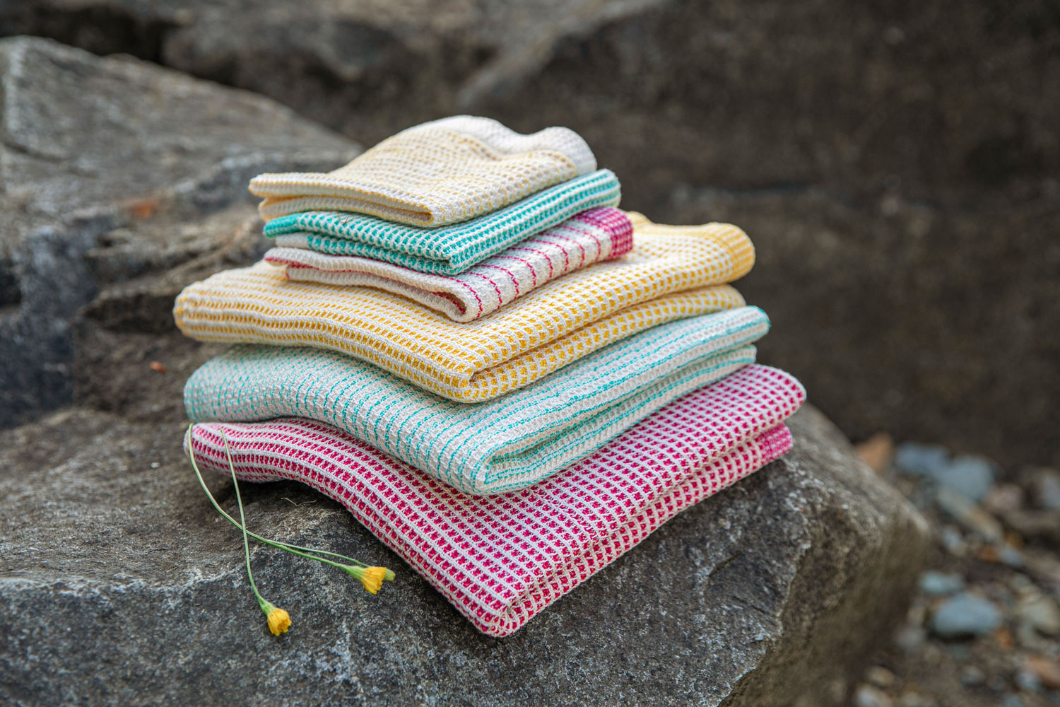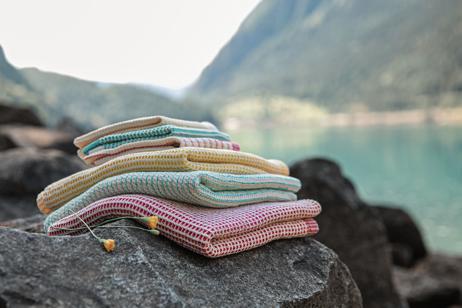 La linea include quattro formati: telo da doccia, asciugamano, asciugamano ospiti e lavetta. Pensata per essere versatile, offre infinite combinazioni di colori e design perfettamente coordinati.
