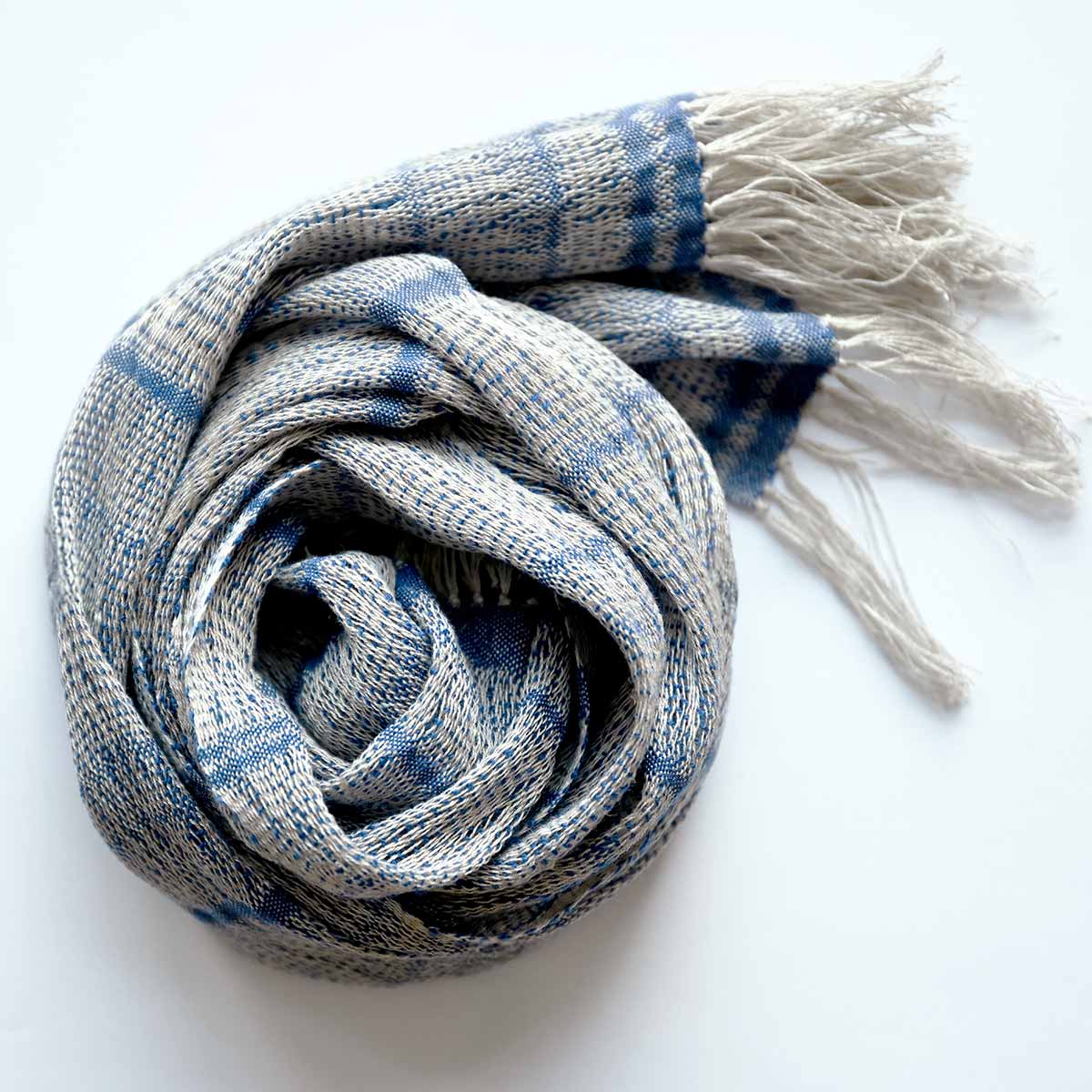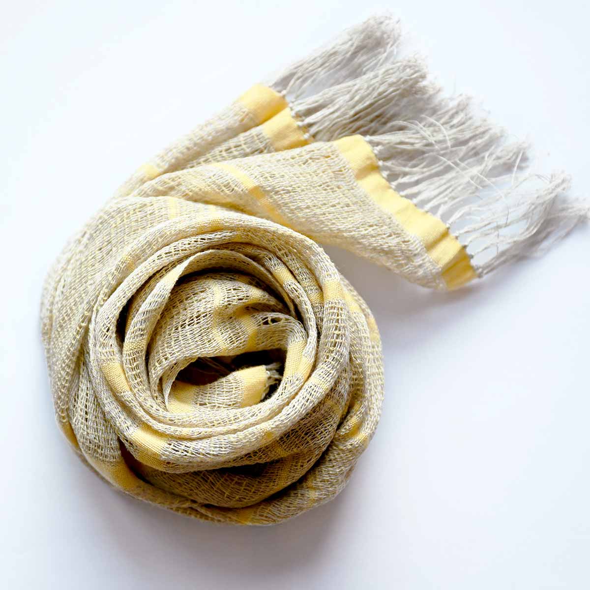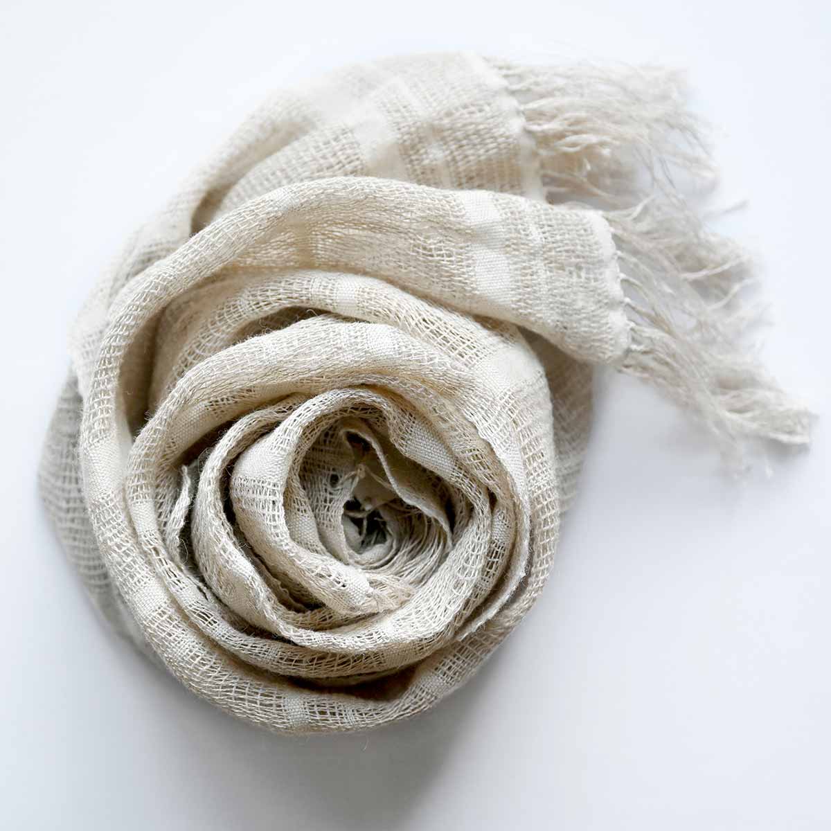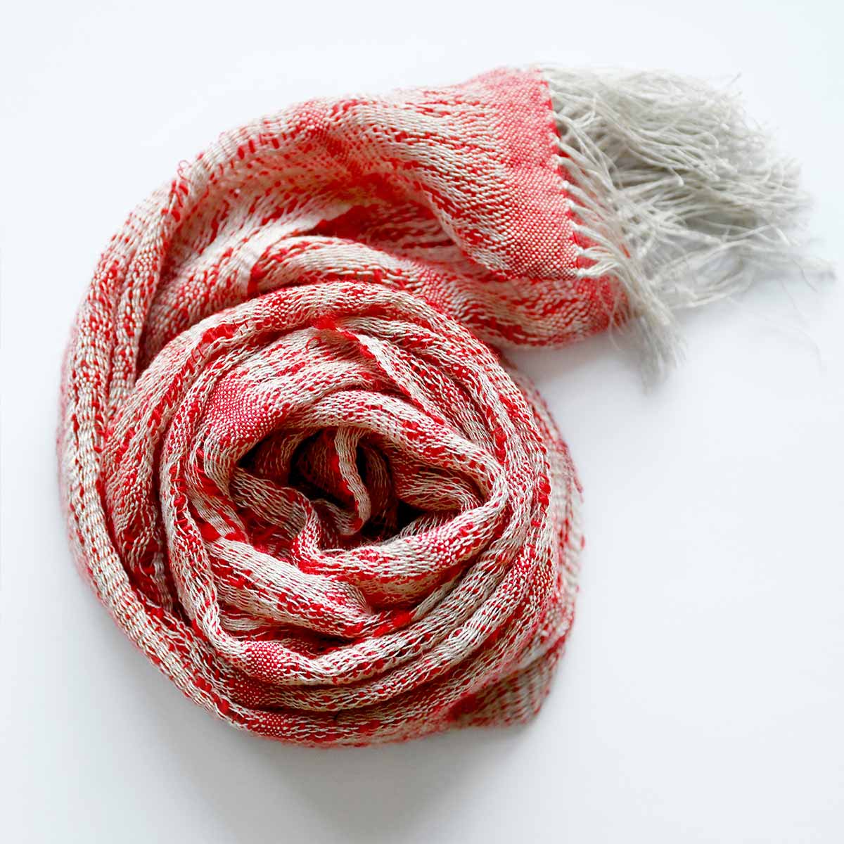 Sciarpa raffinata, tessuta a mano, morbida, dalla struttura ampia e ariosa.