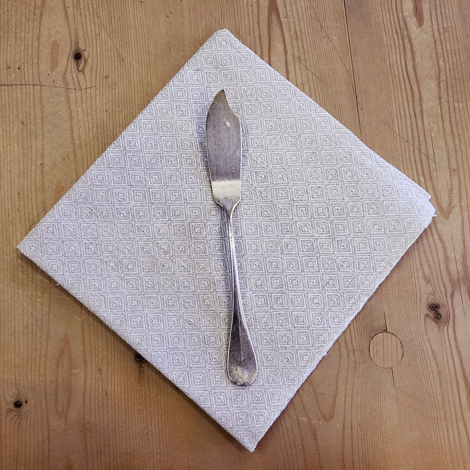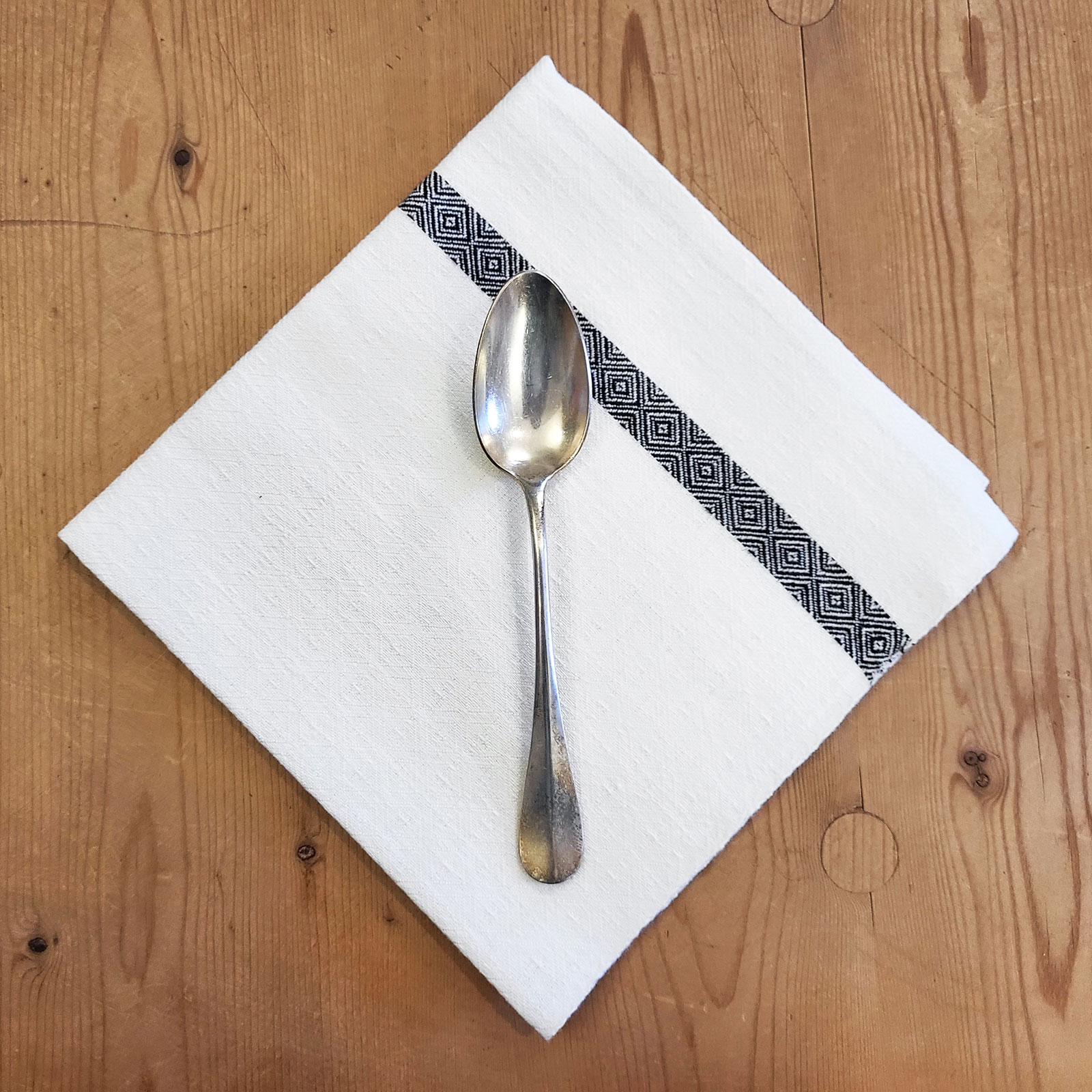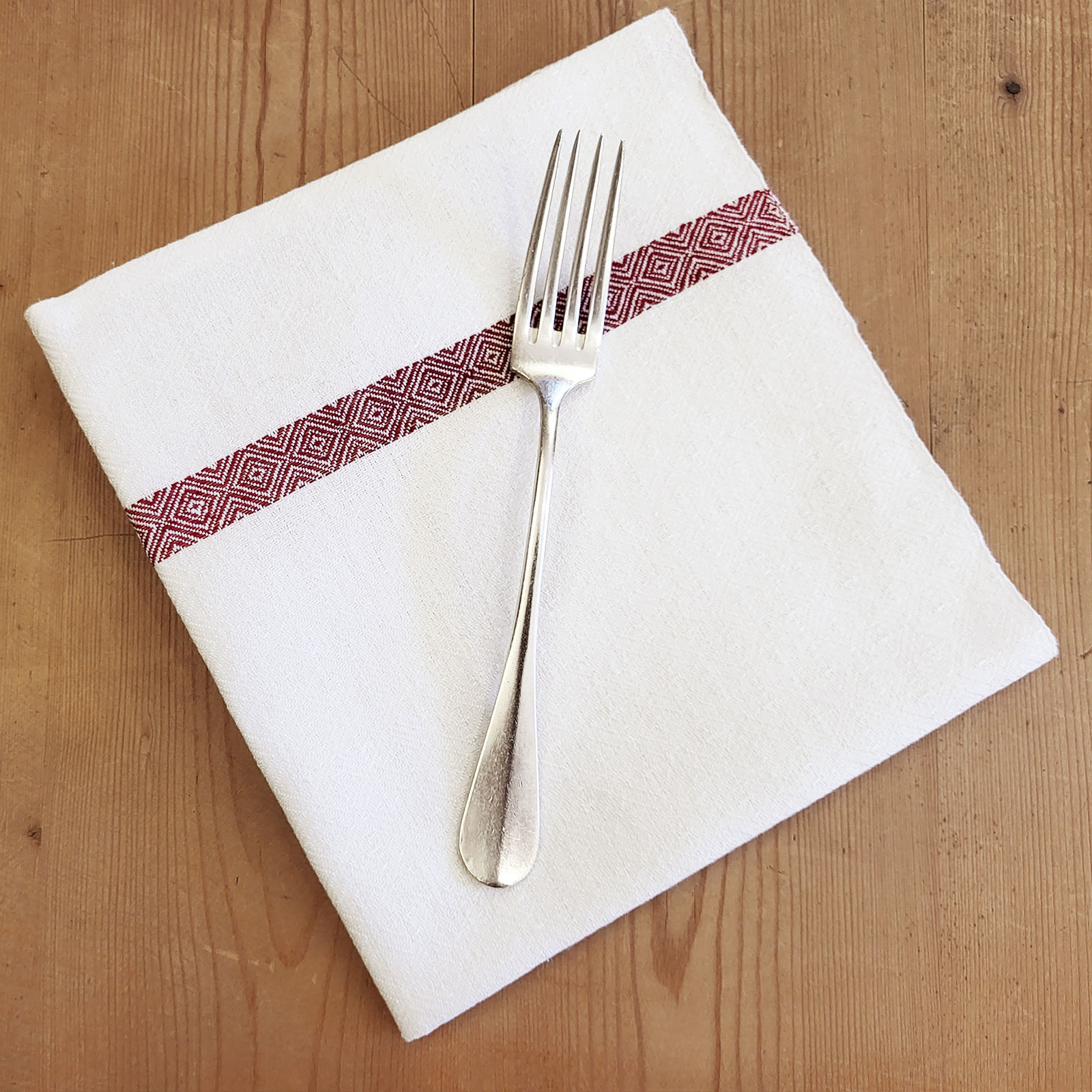 Raffinato tovagliolo in puro lino con motivo a Occhio di pernice.