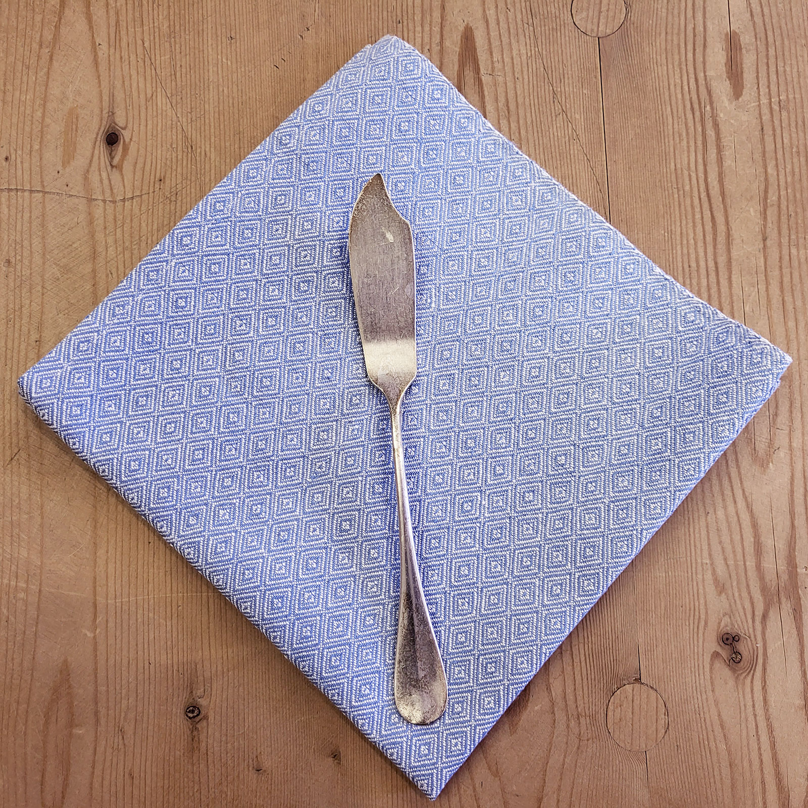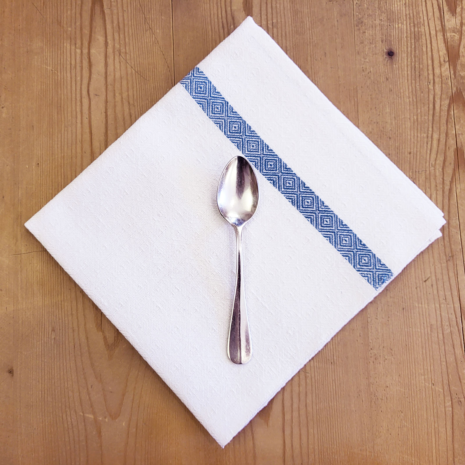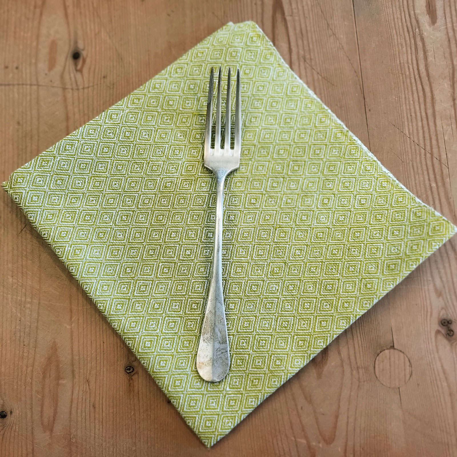 Raffinato tovagliolo in puro lino con motivo a Occhio di pernice.